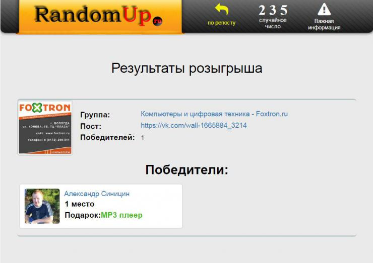 Имя победителя будет определено генератором случайных чисел 17 июня 2016 и опубликовано в комментарии к этой записи и отдельным постом в нашей группе вконтакте.