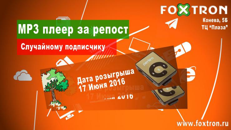 Мы подарим MP3 плеер случайному подписчику нашей группы вконтакте, сделавшему репост розыгрыша!
